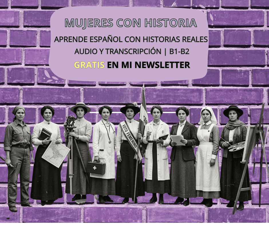 Recibe periódicamente historias de mujeres pioneras y referentes, con su audio y transcripción, para mejorar tu español de forma natural.